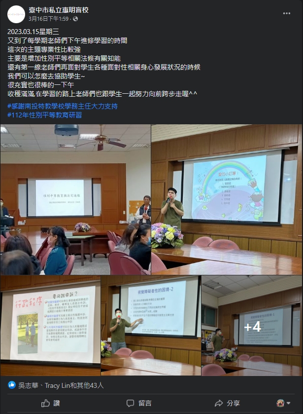 | 台中市政府教育局 | 本校教師 - 賴彥均、章雅惠老師 榮獲 112年度臺中市優良特殊教育人員